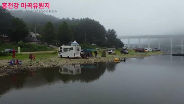 홍천강 마곡유원지는 남이섬 상류 쪽에 위치한 자연 유원지입니다. 정식 캠핑장이 아닌 노지(자유) 캠핑 구역으로 특히 유명하며, 캠핑카, 카라반, 일반 텐트 캠퍼들이 찾는 수도권 근교의 인기 명소입니다.