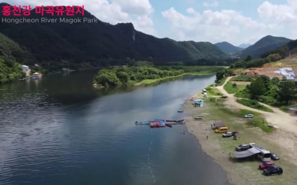 이곳의 가장 큰 매력은 홍천강의 깨끗한 물입니다. 수심이 얕은 곳과 깊은 곳이 적절히 섞여 있어, 가족 단위의 물놀이부터 카누, 카약 등 수상 레저까지 다양하게 즐길 수 있습니다. 특히 여름철에는 수상스키나 제트스키를 타는 사람들도 많아 활기찬 분위기입니다.